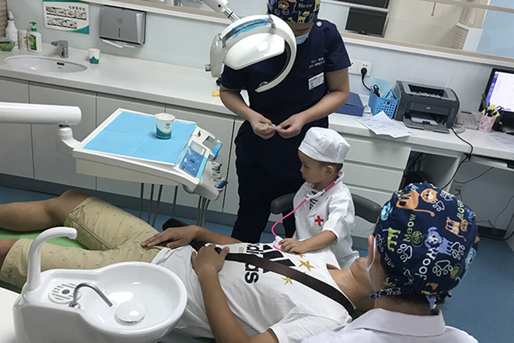 听完口腔保健知识后,小牙医们在医师手把手的指导下,学习了如何使用检查牙齿的工具和高清内窥镜了解爸爸妈妈牙齿的情况,并在互动中消除小朋友对“看牙齿的恐惧”。很多宝宝有模有样的为爸爸妈妈的牙齿完成了整套检查,相当有牙医范儿!