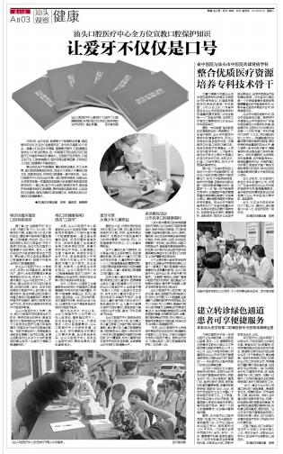 此前,根据《“健康中国2030”规划纲要》,汕头口腔医疗中心组织专家编写的口腔科普书籍《口腔健康指南》,通过通俗易懂的语言,采用问题和答案的形式,详细而直截了当地阐述各类口腔疾病的成因、危害及预防和治疗手段,让普通群众也能了解疾病、疾病的成因及治疗方法,做到就医前心中有数。相较于市面上关于口腔健康的书籍大多为教材,专业性极强,也鲜有人会想起主动寻求购买,汕头口腔医疗中心将《口腔健康指南》做成“口袋书”,免费赠送分发给市民,目前已有多名群众表示阅读后非常受益。