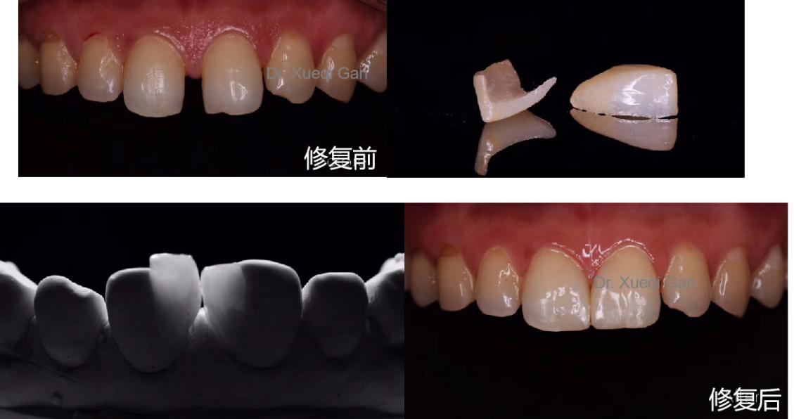 (2)生活中,由于某些原因(比如长期喝碳酸饮料)导致的牙齿表面缺损,并且呈现出黄褐色斑点,也可以通过瓷贴面的方式恢复其缺损的牙面。