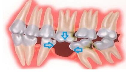 缺牙空隙两侧的牙,由于失去支撑,也向空隙处倾斜,发生牙齿排列紊乱,必然形成较大的缝隙,移位,扭转,造成食物嵌塞等。继而引发龋病、牙周病,进一步加重对剩余牙齿的损害。当余留牙齿数量较少时,由于它们承担了过大的咬合力量,将会造成牙槽骨快速丧失,出现牙齿松动甚至脱落。缺牙时间越长、数目越多,对余留牙齿的影响将会越大。