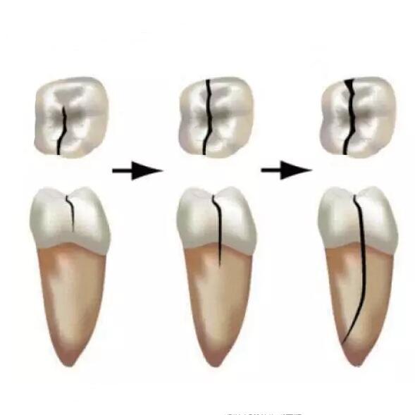 牙齿_外面的一层叫牙釉质,它很坚硬,但几乎没有任何弹性,里面一层我们称之为牙本质,弹性相对就好很多,再往里就是我们的牙髓组织。牙釉质没有弹性是个造成牙齿有裂纹的本质原因,那么具体什么情况会导致牙齿出现裂纹呢: