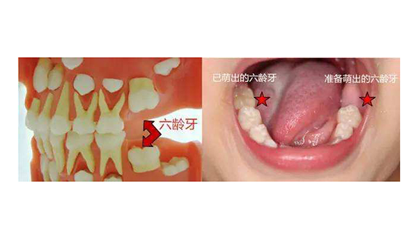 儿童6岁左右紧靠_后一个乳磨牙的后方长出第一个恒磨牙,也叫“六龄牙”,比下中切牙的长出稍早或同时,6岁左右乳下中切牙脱落。在整个换牙期间,是儿童保护牙齿的重要时期。