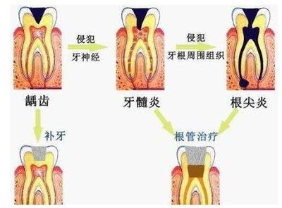 如果牙髓因受伤或疾病而受损并无法自行修复,细菌及其产品会渗入牙髓并导致牙髓死亡。不进行根管手术的话,可在根尖形成脓肿并引起相当大的疼痛。即使没有疼痛,也可能损坏将牙齿固定在颌骨中的骨骼。不进行进一步治疗,可能就要拔除牙齿,脓肿会变得严重,并且会发生面部肿胀。