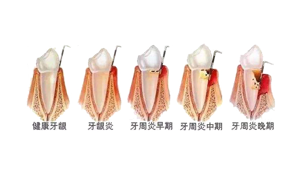 牙周病更易让人忽视。早期的牙周病只是牙龈出血,到了中期也只是有牙龈萎缩的现象,只有到了牙周病晚期才会出现牙齿松动、咀嚼无力、咀嚼疼痛,甚至牙齿脱落。可是到了这个时候,医生也无能为力了。